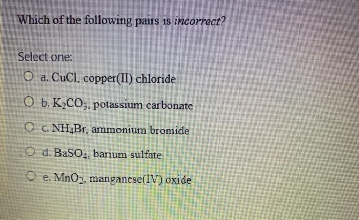 Which Of The Following Pairs Is Incorrect