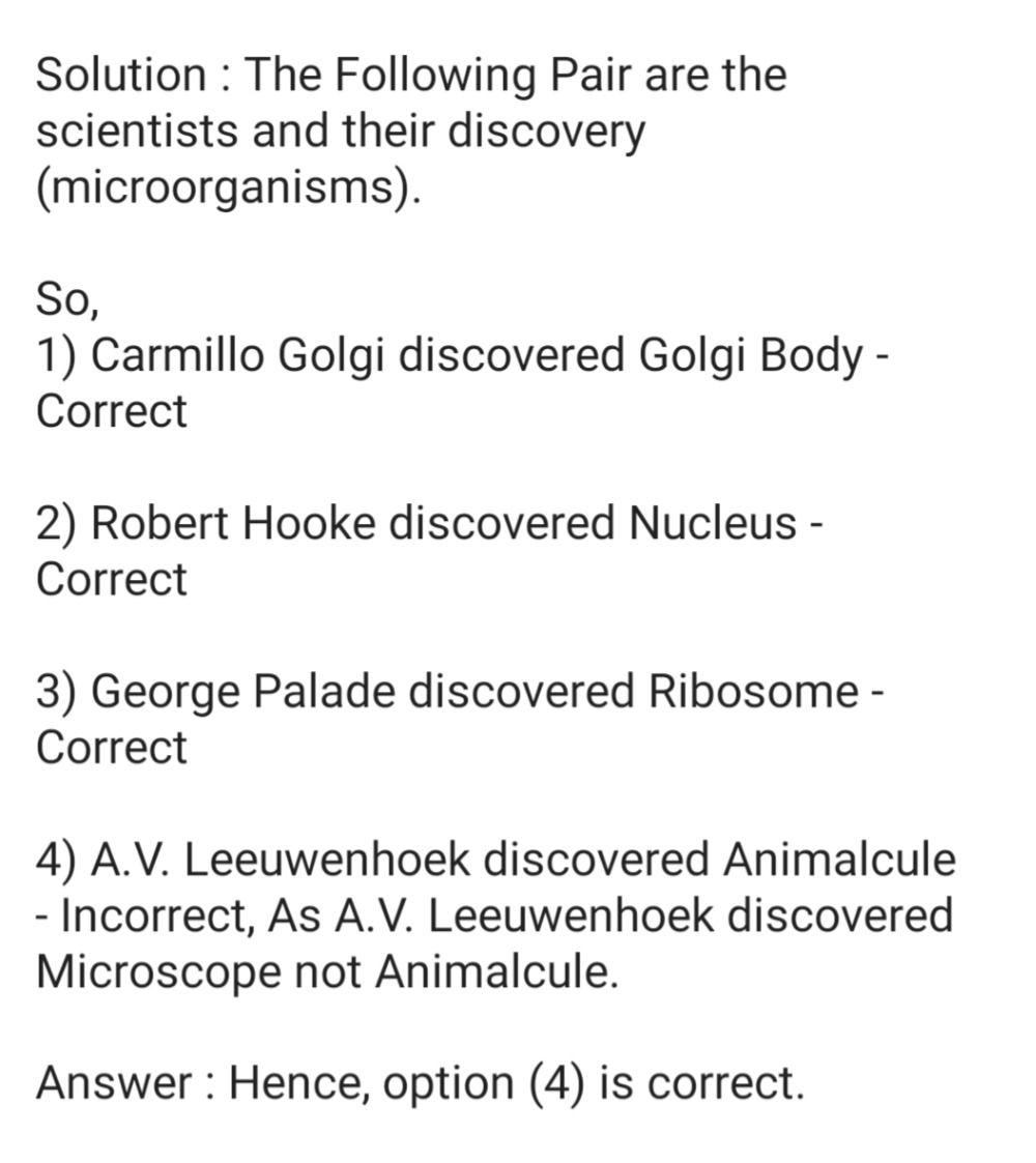 Select the correct answer using the codes given below. Correct option is D The nucleus is the brain of a cell which controls the entire cell. Which of the following pairs is incorrect.
